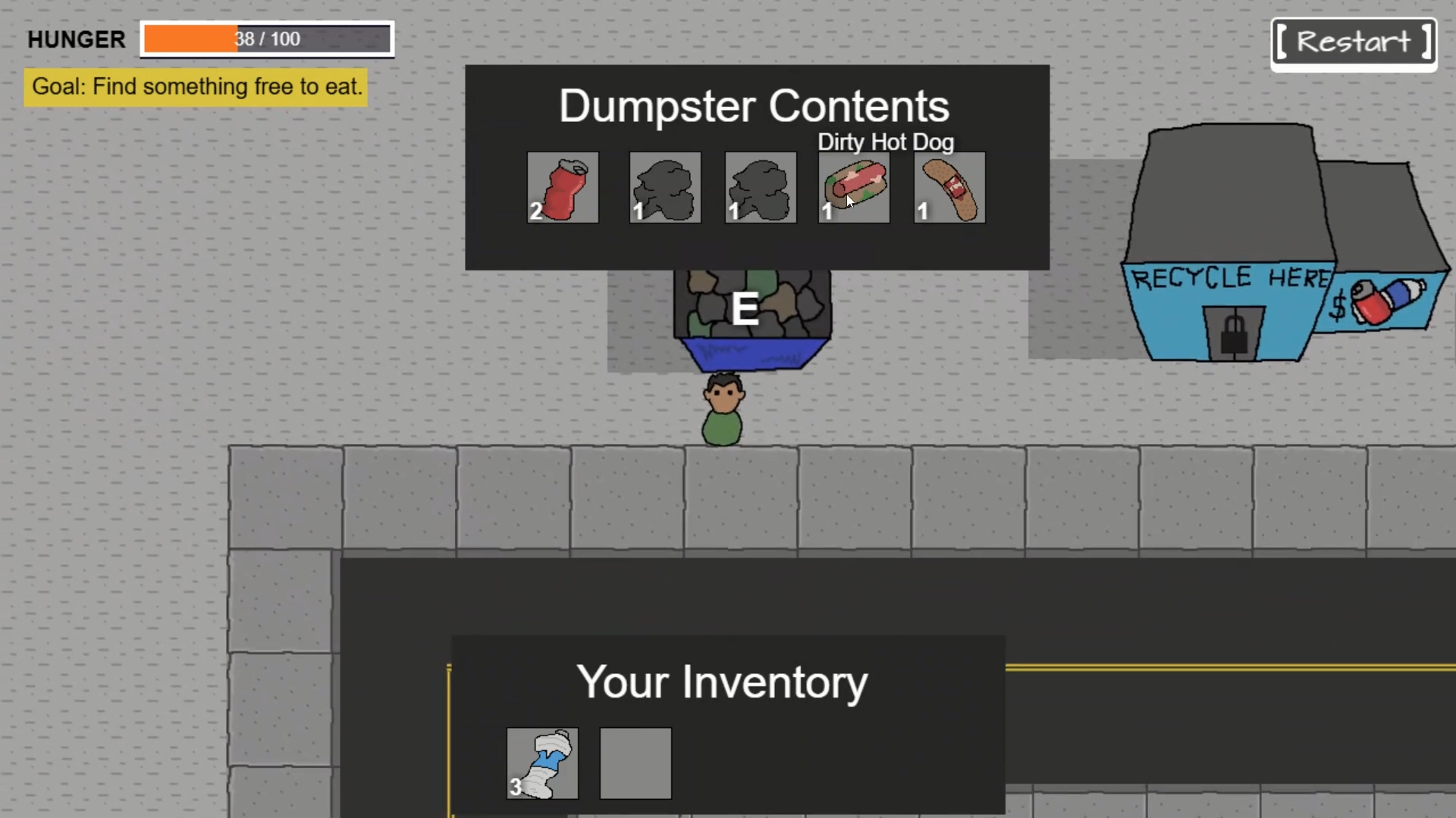 I made this unfinished online desktop game with Gdevelop a while back. The game play is led by goals in top left corner. You can look for food and find ways to make money. Theres only about 5 minutes of gameplay or less, and then there are no more goals. I don't plan to continue this project. Feel free to leave a comment with your thoughts.